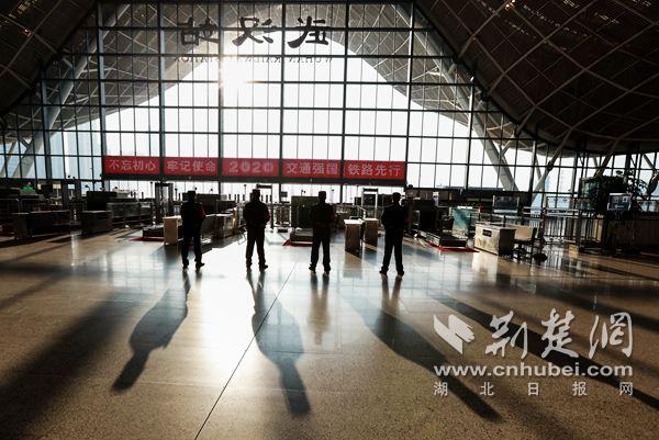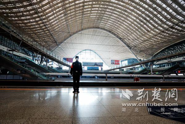 2月3日,武汉铁路公安局武汉火车站派出所来自湖北黄冈的90后民警骆界奇在站台巡逻。