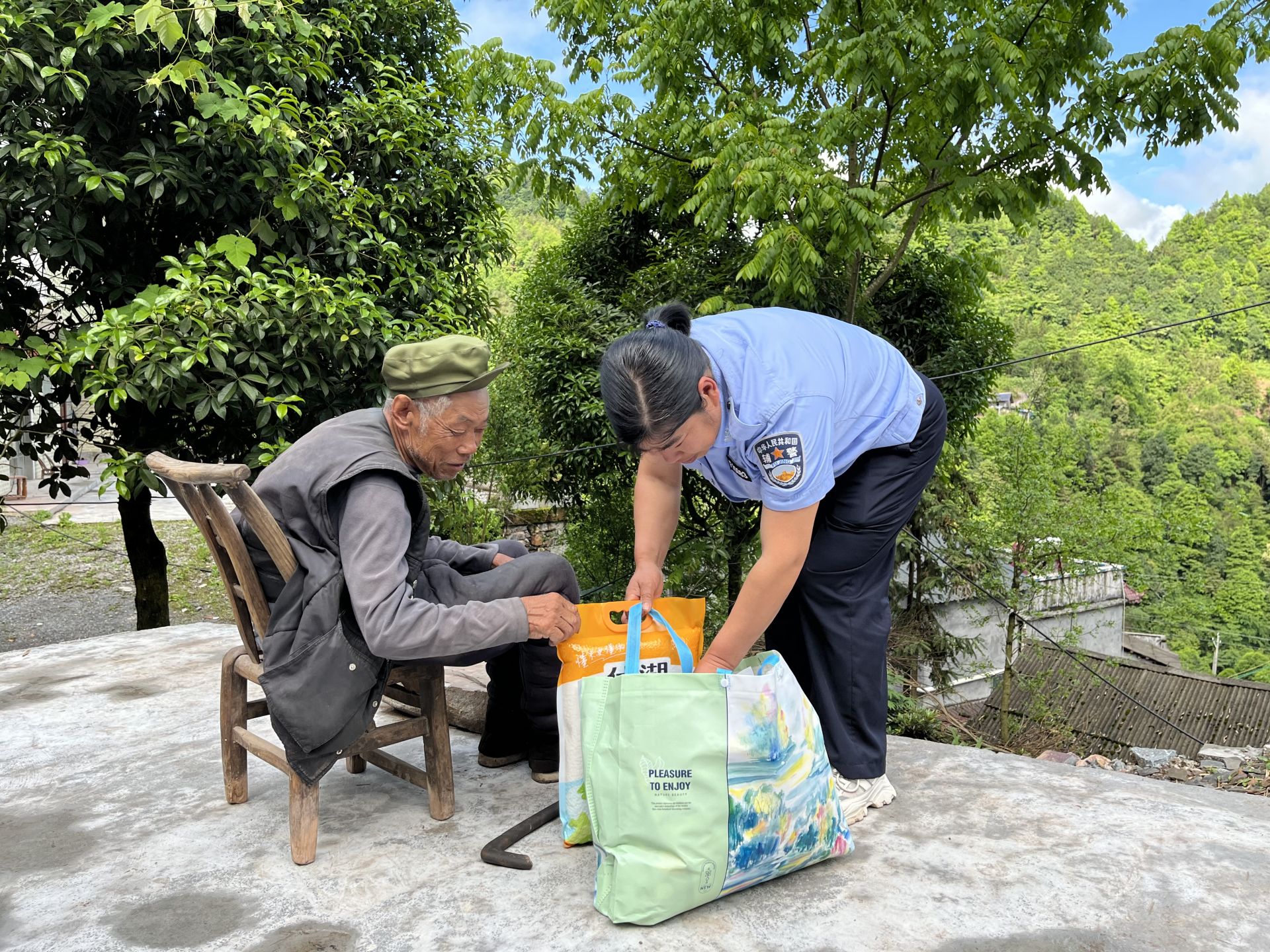 5月10日,倪大姐提着一大袋米面油等生活用品去看望村里独居老人柳爷爷。柳爷爷正坐在院坝前晒太阳,见到倪大姐,他嘴里念叨着:“你硬是过细,真的是麻烦你了,每个星期都来看我。”柳爷爷今年75岁,因身体残疾生活不能完全自理,儿子又常年在外务工无人照顾。倪大姐几乎每个星期都会去他家看看,帮他收拾房间打扫卫生。