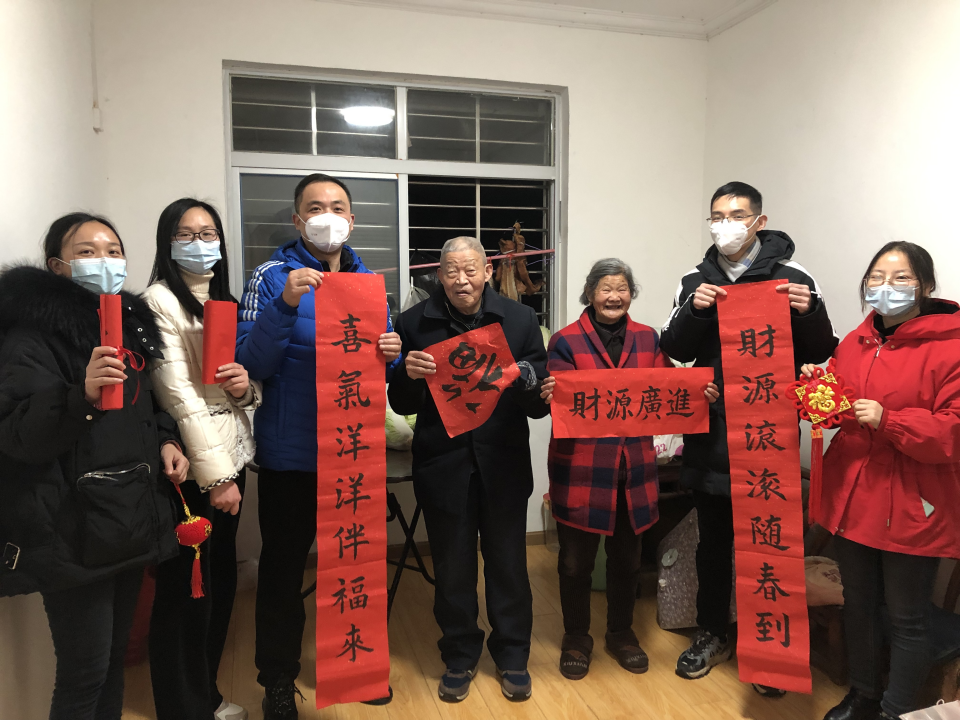 红红的春联,浓浓的墨香,暖暖的吉祥。前期襄阳市军休一所书法家们轮番上阵,挥毫泼墨热情创作,浓浓的年味浓缩于一笔一画之间,将新年祝福倾注于喜庆的春联纸上。随后所工作人员来到独居老人单毓珍家中,将写好的春联亲自交给老人,了解老人的生活及身体状况,提醒她最近气温骤降,要注意添加衣服,叮嘱用火、用电安全。并预祝新年快乐,身体健康。新春佳节的祝福和工作人员热情、体贴的服务,让老人如沐暖阳,倍受感动。“红红火火的日子,有大红福字、吉祥对联才叫过年呢!”单毓珍开心地说。