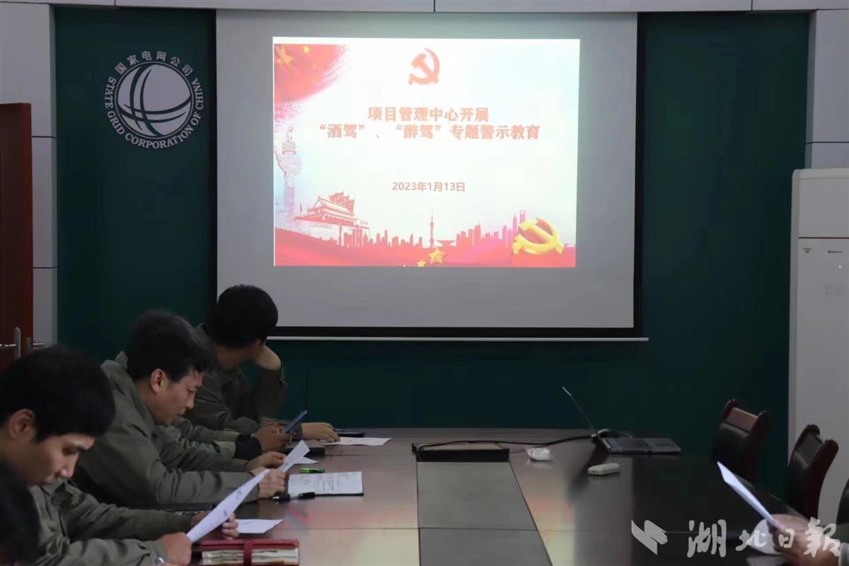 当日,国网黄石供电公司项目管理中心组织全体员工开展节前酒驾醉驾专题警示教育会,向员工注入远离酒驾醉驾的“疫苗”,增强抵御酒后驾驶的“免疫力”。