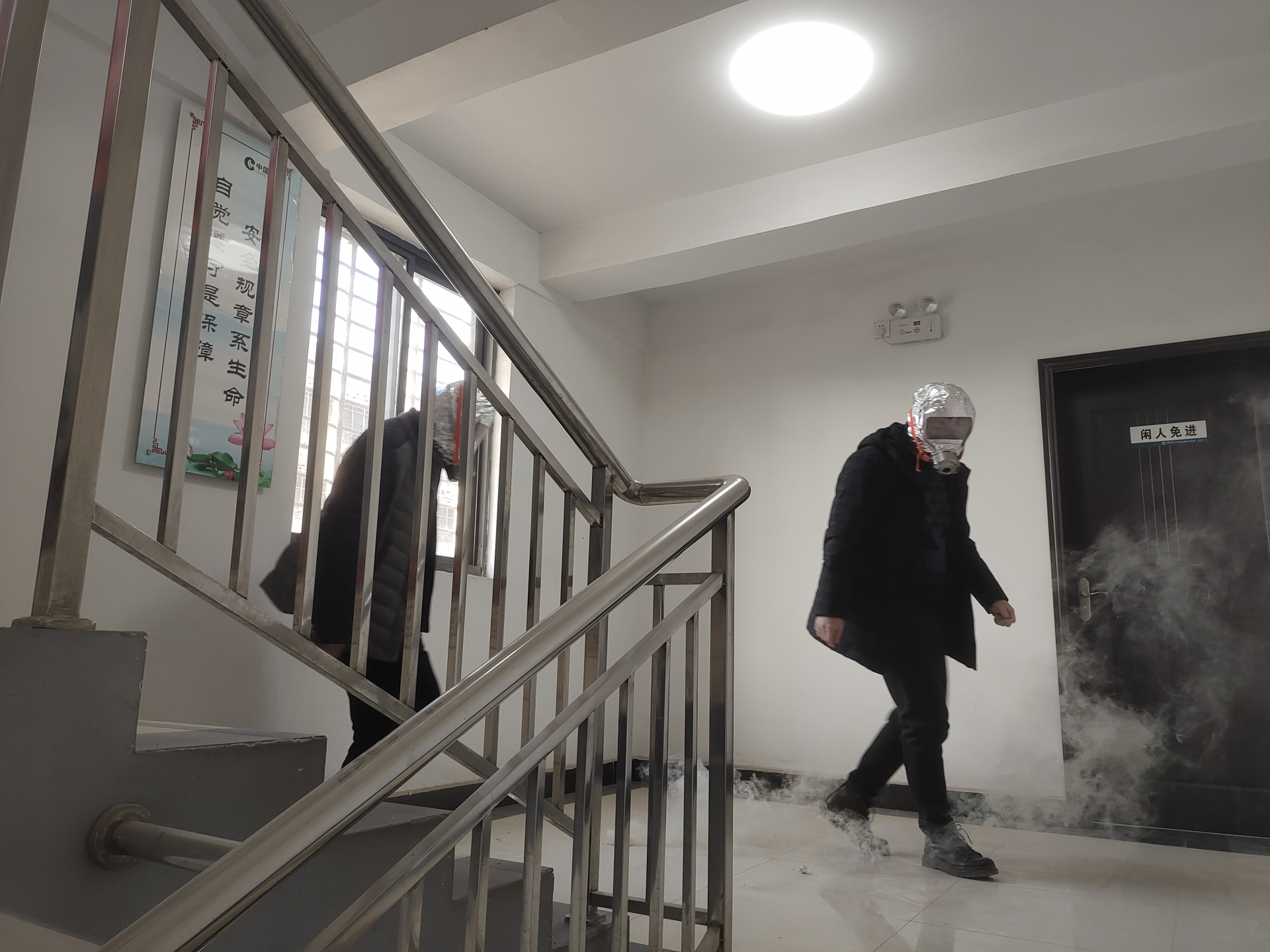 演练中,主要负责人收到报告立即启动应急预案,组织楼内人员疏散,疏散组在消防逃生通道做指引疏散工作。事发楼层及以上楼上人员疏散完毕后,其他楼层人员也快速疏散完毕。
