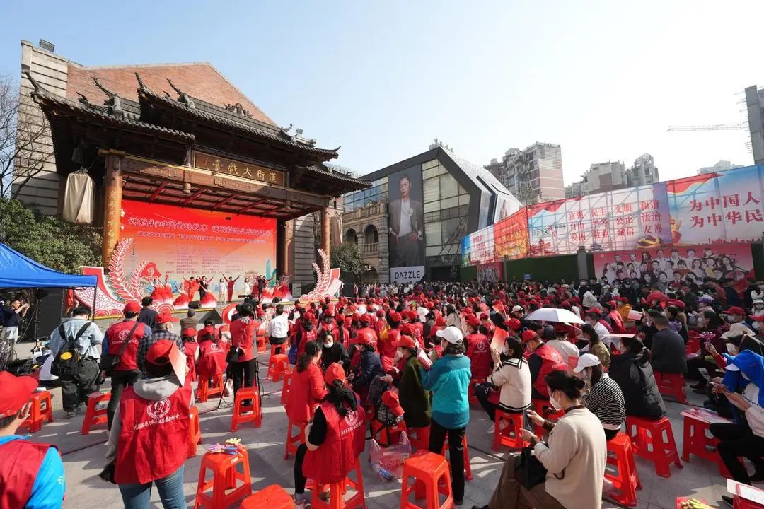 2023年3月5日下午,“讲好新时代雷锋故事 谱写荆楚文艺新篇章”湖北省文联荆楚“红色文艺轻骑兵”学雷锋文艺志愿服务惠民演出在楚河汉街大戏台举办。省文联党组书记、常务副主席张士军,省文联党组成员、副主席王永平,武汉市文联党组书记、副主席章建育,武汉市文联党组成员、副主席董芳,武昌区委宣传部副部长朱缨、柏雨辰与现场数千名观众们共同观看演出。