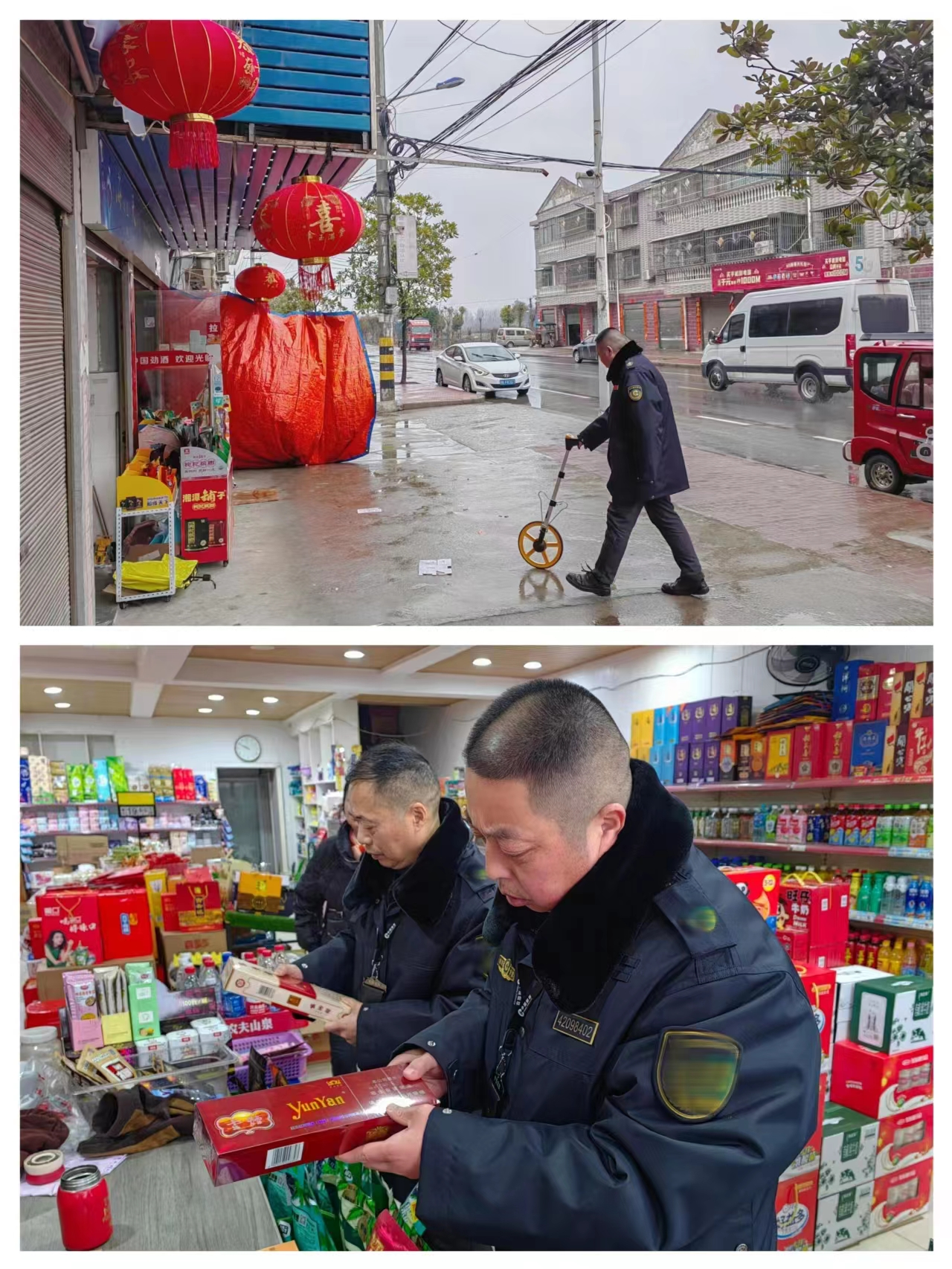 其间,带班领导随同城关管理所市场管理员开展执法检查,参与查处了一起违规经营卷烟案件,查获违规经营卷烟41条,涉案值一万余元,并结合现场办案情况,从办案效果、典型意义等方面进行了剖析和总结,再次强调了专卖管理工作的要求、管辖范围和办案流程。随后,带班领导与基层一线执法人员对一户新申办卷烟零售许可证的店面进行实地勘验,重点查看周边零售户间距要求是否达标,严格把关许可证办理要求。