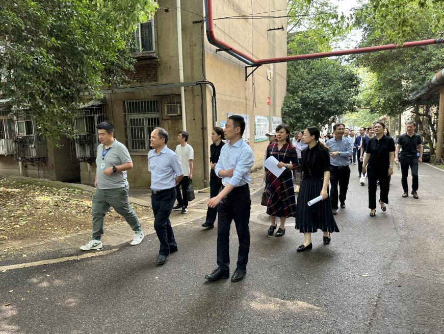 代表们首先来到邮科院,实地察看了邮科院宿舍片城市更新项目的现貌现状,听取了项目部负责人的介绍,全面了解了项目背景及项目推进过程中存在的问题和难点。邮科院宿舍片旧城改造项目是市、区确定的今年重点城市更新单元,也是省《关于开展美好环境与幸福生活共同缔造活动试点工作的通知》拟选取的鲁磨路信创示范片中包含的重点项目。项目涉及国有企业家属区,由于历史原因,其中包含大量50-70年代建造房屋,房屋主体、电路老旧,存在消防安全隐患,更新需求迫切。