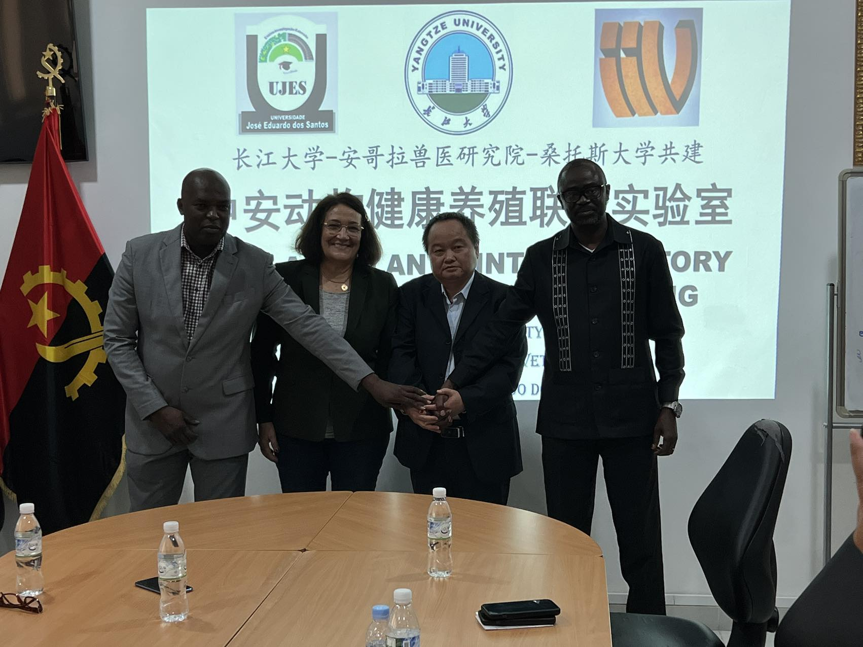 在安期间,杜辉平会长积极协调中安农业示范基地、安中农协等当地科研机构与商协会,安排刘国平教授应邀拜会安哥拉农业部兽医研究院、安哥拉国家就业局、安哥拉中国总商会、安哥拉多斯·桑托斯大学,考察安哥拉中国涉农企业、安哥拉中国农业示范中心、安哥拉海山集团及马佐华安有限公司等企业,并就有关项落地进行洽谈,达成合作意向;与安方就共建“中安动物健康养殖联合实验室”“生猪健康养殖与育种基地”等项目建设开展深入交流,达成了具体共识。长江大学与安哥拉农业部兽医研究院签订了战略合作备忘录,与安哥拉农业部兽医研究院、安哥拉多斯·桑托斯大学签署三方共建联合实验室协议书草案,并开展项目选址工作。据了解,7月初,安哥拉农业部畜牧兽医局主要领导拟带队来华访问,出席在武汉举办的中非科技创新论坛,来荆参观和访问长江大学,推动双方合作走深走实走出成效,有关流程正在紧锣密鼓地进行。