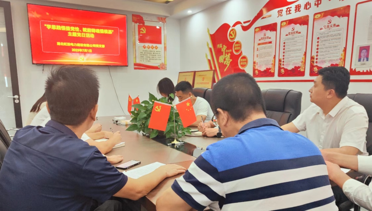 活动现场,与会党员、入党积极分子重温了入党誓词;公司总经理黄山专题宣讲了《密切联系基层员工群众大兴调查研究务实之风,为走好中国式现代化电建发展之路贡献虹投力量》;公司党支部书记杨泽文以《不忘初心 牢记使命 推动公司高质量发展》为题给大家上了"七一"专题党课,同时总结了公司的党建工作;与会人员就本次主题党日活动进行了交流发言,并对公司的发展建言献策,他们纷纷表示,要听党话、感党恩、跟党走。
