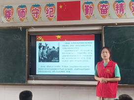 课堂上,小分队为孩子们播放“二二七”历史事件讲解视频。随后,队员讲述少年英雄肖汉洲的故事。1933年,敌军26师包围桥头湾,龙港镇河东村肖汉洲全家被捕。面对严刑拷打,25岁的肖汉洲拒不透露任何信息,坚贞不屈,最后英勇牺牲。聆听英雄故事,孩子们眼里闪烁着泪花。一名学生站起来,分享了他知道的英雄故事——抗美援朝志愿军战士黄继光的故事。小分队队员、大桥完全小学学生,一起通过视频与英雄儿女穿越时空对话,传承红色基因,赓续红色血脉,不忘初心使命,砥砺奋进力量。