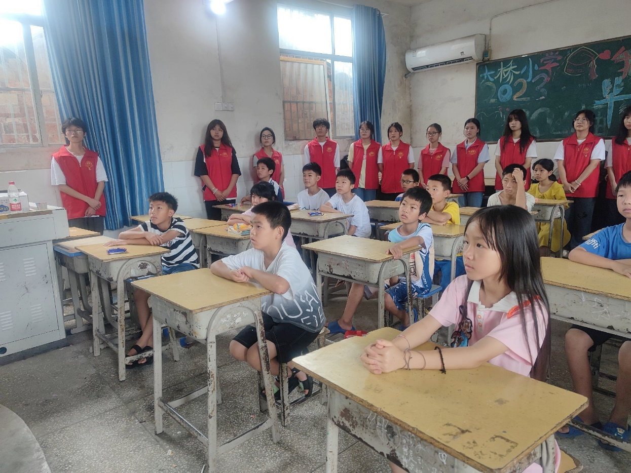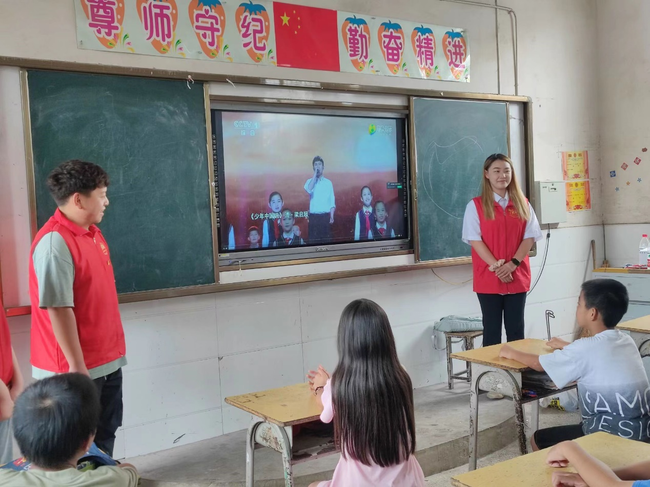 课堂上,“向阳向新”小分队为孩子们播放《有我》视频,向大家展示了湖北经济学院学子们的大学生活。走出大山,走进大学,用知识改变命运,在大学课堂学习专业知识,在青葱校园参加文体活动,用笔下的文字勾勒未来,用脚下的阳光丈量世界。“老师,大学是做什么的?”孩子扬起稚嫩的脸庞问道。“大学,就是结识许多好朋友的地方, 就是拥有更好的生活状态的地方,就是丰富精神、启迪心灵的地方,就是换种方式认识世界的地方。”用知识拓宽知识,以文化滋养文化,孩子们认真观看,流露出对大学生活的向往。