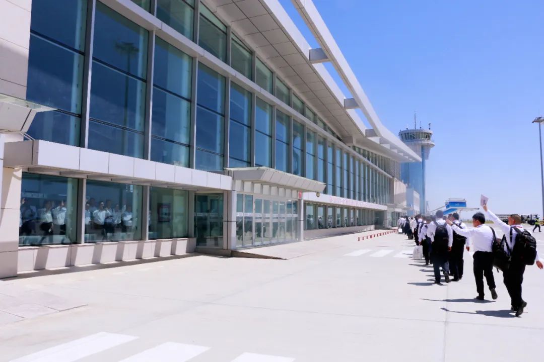 第八批援疆干部返汉(左)第九批援疆干部抵疆(右),双方挥手示意