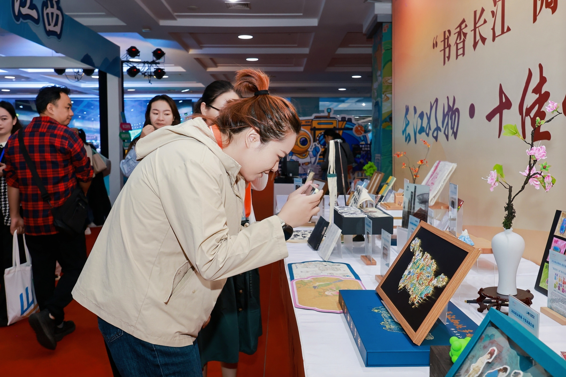跨界融合,文创文旅文教协同创新。本次展会亦成为推动文旅融合、展示长江文化的重要平台。4700平方米的文创展区,以“可触摸的长江文明”为主题,汇聚百余家文创单位,展示“长江好物”“荆楚好礼”“高校文创”,每件作品都承载着地域文化的深厚底蕴与当代创意;随州汉字解密、荆州楚简非遗体验等项目,通过互动式展陈吸引大量读者驻足打卡,亲手拼合楚简、猜解字谜,让读者在游戏中感知中华文字之美。鲁迅同款“毛背心”“闰土叉猹”等文创IP衍生产品,让文化以更亲切的方式走进日常生活。随着长江文化创意产业发展联盟的成立和“长江好物”“荆楚有礼”等特色品牌的打造,长江文化正从资源保护向品牌化、IP化升级,推动阅读推广从单向传递转向跨界融合与多维互动,为全民阅读注入了新内涵与新机遇。