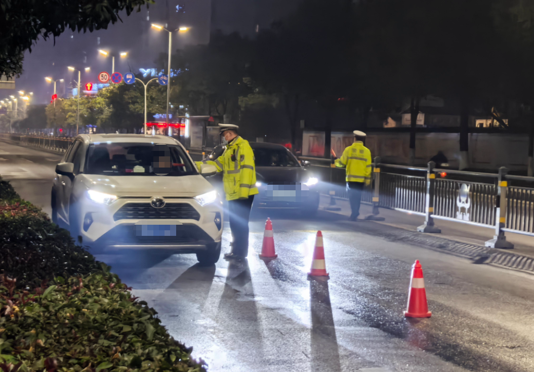 ▲ 恩施交警在来凤县翔凤镇凤翔大道开展酒驾夜查行动,提醒过往驾驶人“开车不喝酒、喝酒不开车”