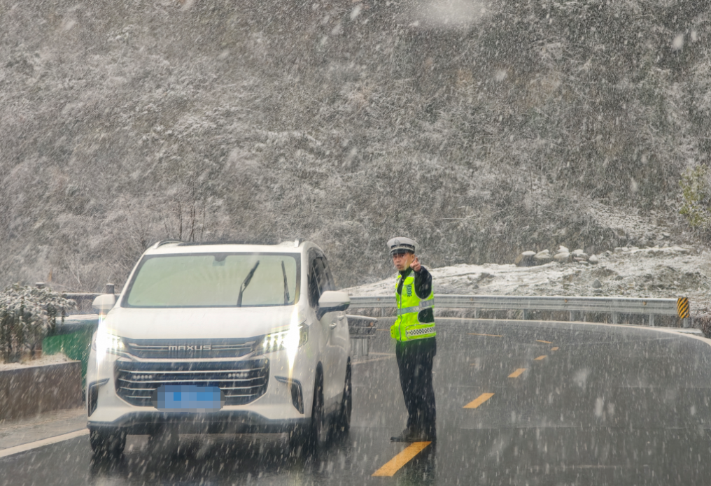 ▲ 宜昌交警在芝茅公路值守,并对过往车辆驾驶人进行安全提醒