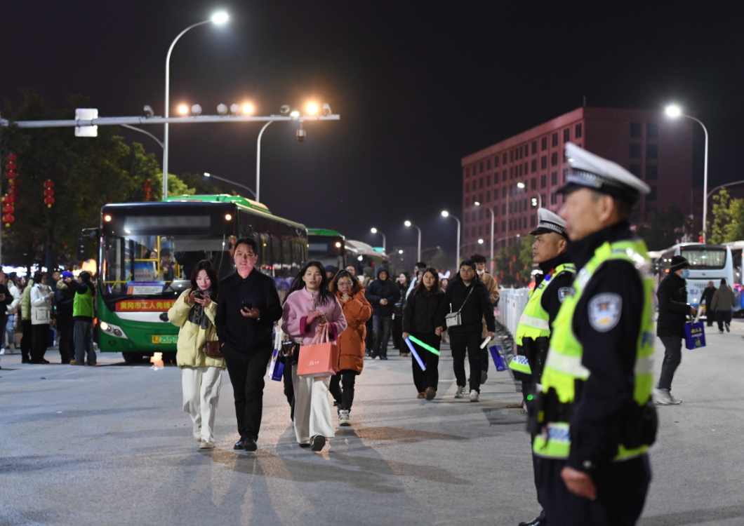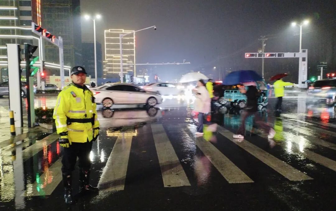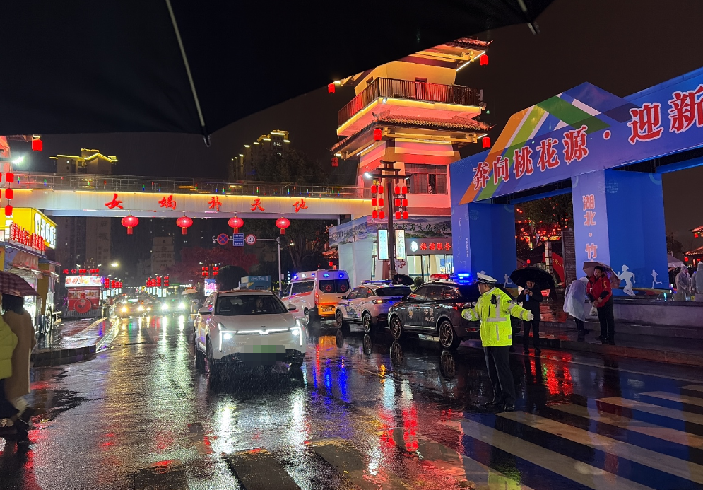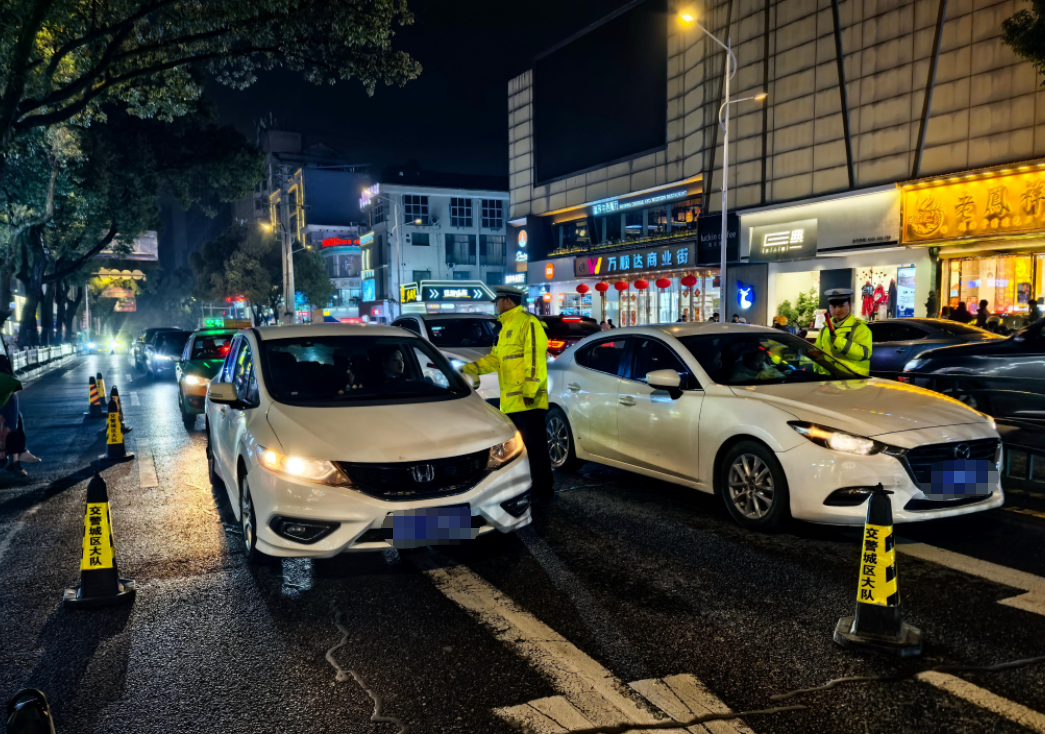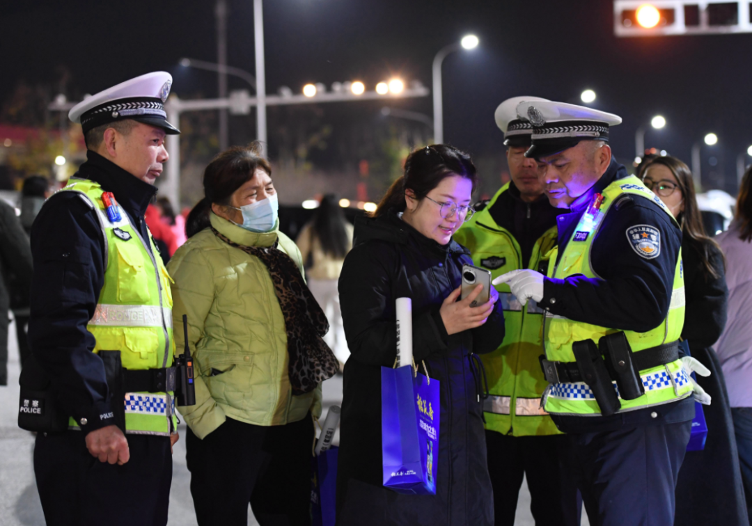 ▲ 荆州交警提前值守重要路段,应对跨年夜人流车流激增情况