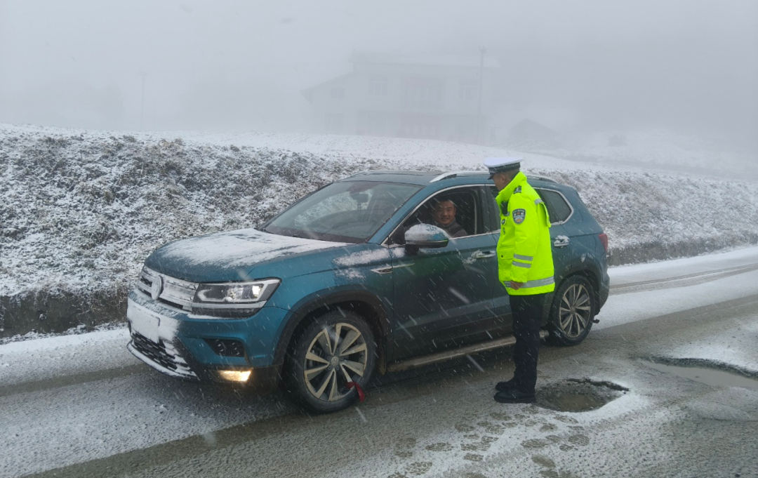 ▲ 高警五支队民警在沪渝高速白羊塘服务区提醒过往驾驶人雨雪天气谨慎驾驶