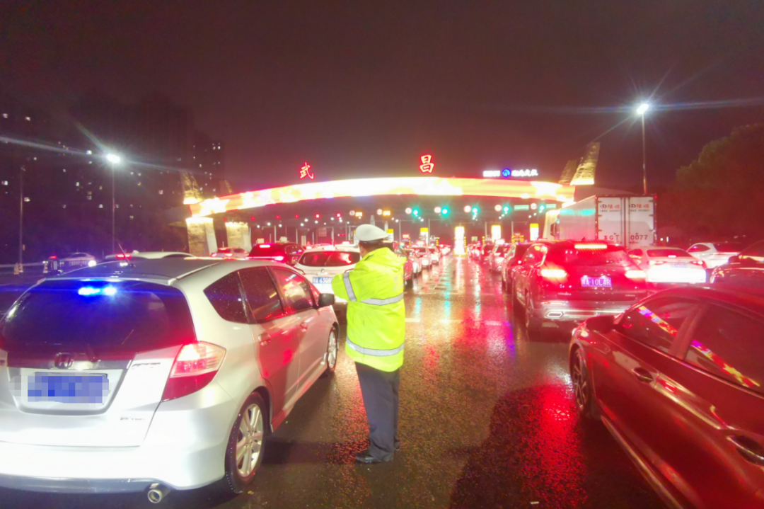 ▲ 高警一支队民警在青郑高速武昌收费站指挥疏导交通