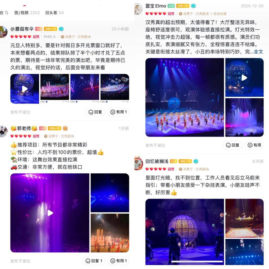 游客自发传播,形成“来湖北武汉必看汉秀”的打卡认知。