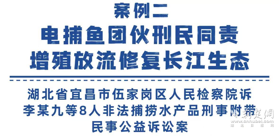 宜昌市伍家岗区人民检察院以李某九等8人犯非法捕捞水产品罪提起公诉,并提起附带民事公益诉讼,请求李某九等8人投放成鱼7976斤、幼鱼174万尾以修复生态。
