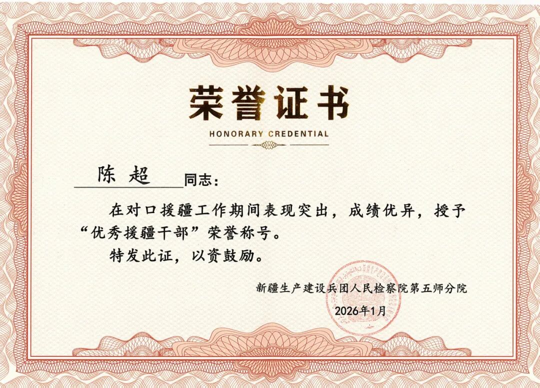 “援疆不是简单的支援,而是带着责任与敬畏,与边疆同仁并肩作战。”这是陈超出发前对自己的承诺,也是他八个月来的行动指南。来到兵团第五师检察分院,陈超继续从事检察侦查、刑事执行及数字检察工作。