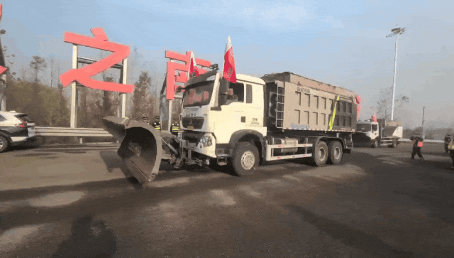 ▲高警一支队联合辖区路政部门、巡检办、养护部门开展防冻防滑演练。