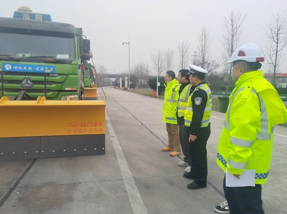 ▲仙桃交警实地检查防冻防滑设备、物资、机械、人员等应急准备情况。