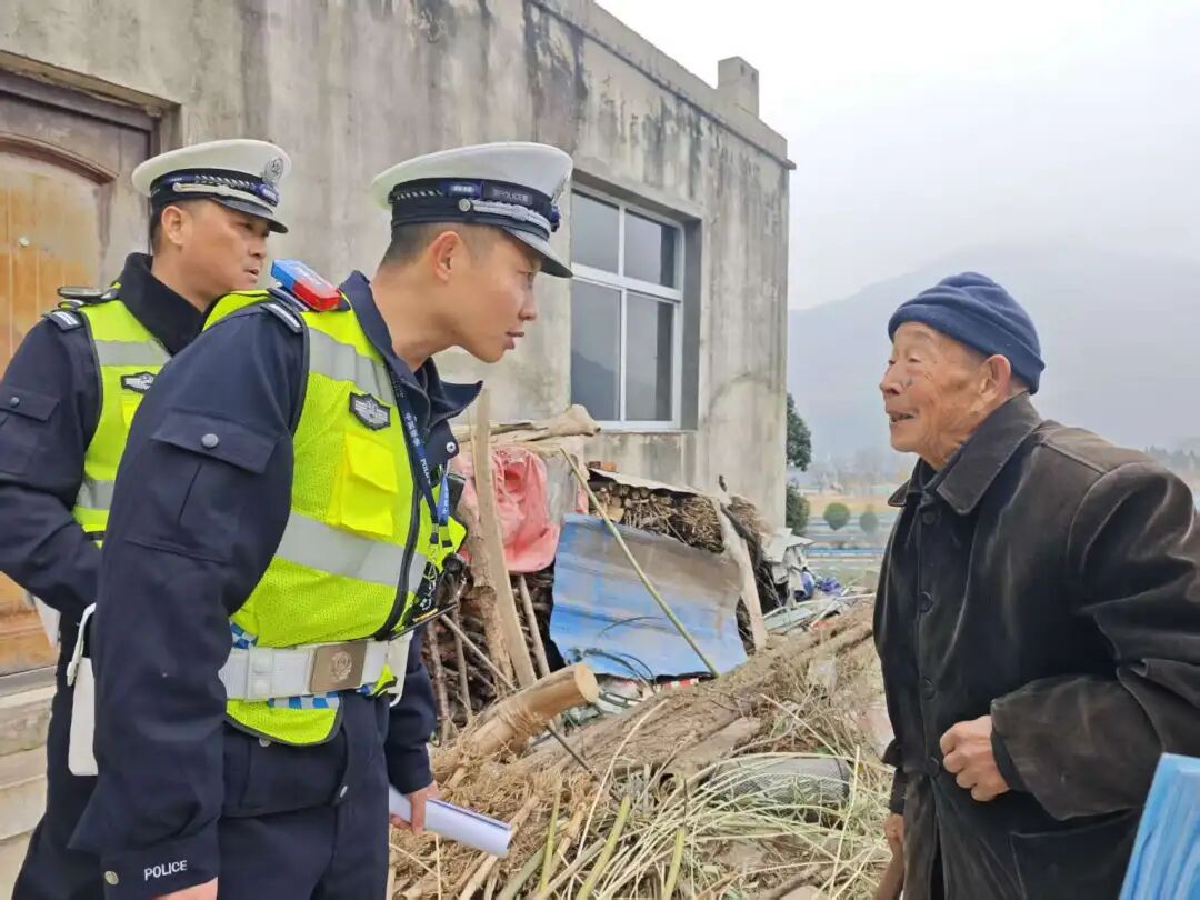▲襄阳交警走进高速沿线村庄,入村入户开展恶劣天气安全出行提醒。
