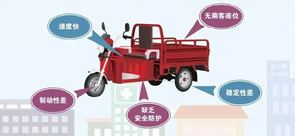 三轮车其 “前一后二” 的车轮布局导致重心偏高,载人时,尤其是车厢挤满乘客,车辆稳定性急剧下降,急刹车或转弯时极易侧翻,一旦发生交通事故将造成不可估量的损失。
