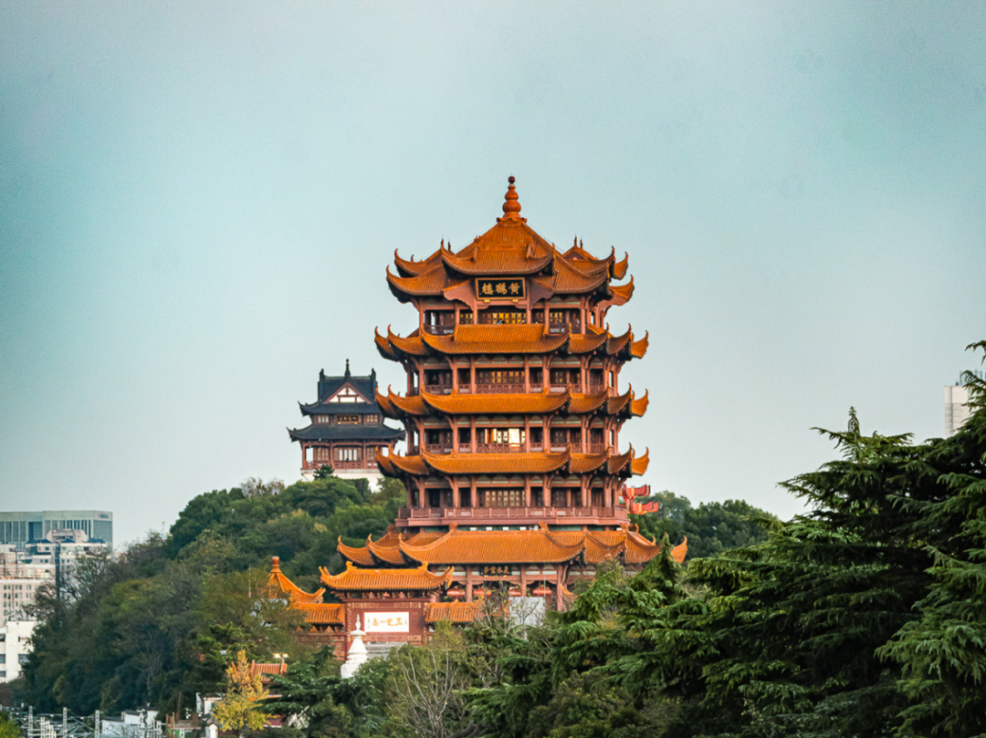 登黄鹤楼远眺两江四岸,看大桥飞架、灯火璀璨。