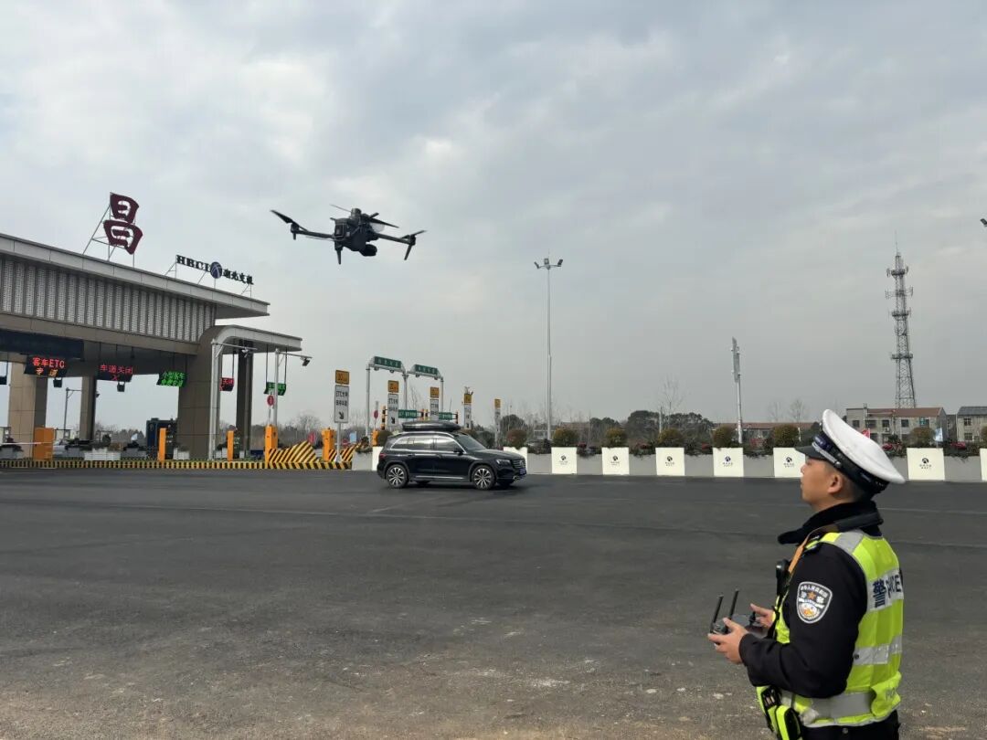 ▲李天峰在京港澳高速孝昌收费站操作无人机进行空中巡逻
