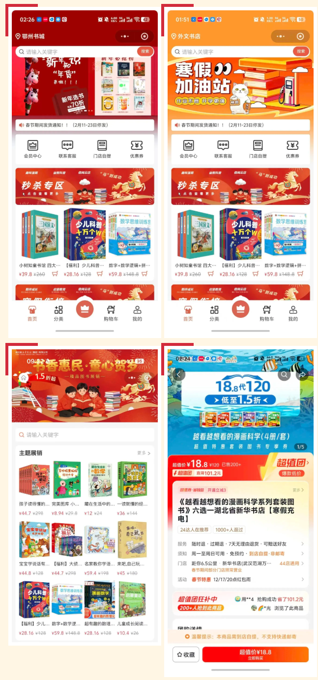 构建“总部统筹+门店联动”的直播矩阵,开展60余场主题直播,推出“年味里读经典”“开学收心计”等特色专场,发布“探店剧透”“书单推荐” 等系列短视频,单场最高观看量超10万人次。