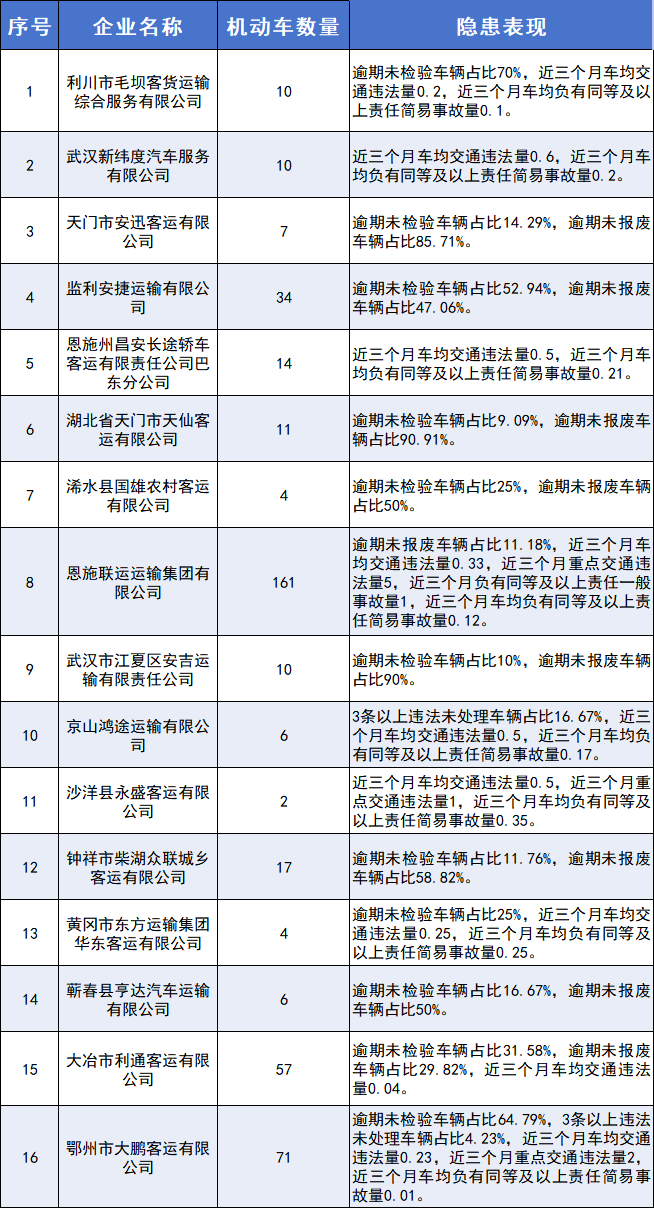 根据公安交通管理大数据分析研判,我省16家运输企业被列为2026年1月份高风险客运企业,具体情况曝光如下: